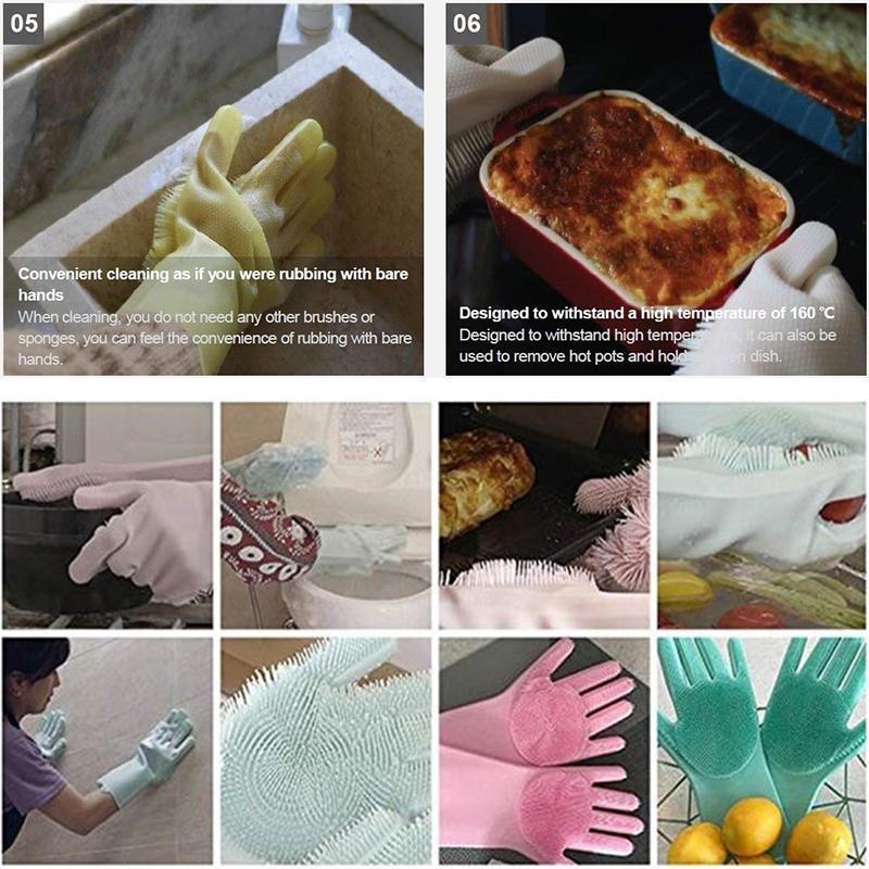 Soft & flexible silicone gloves will deep clean every corner, fast foaming to use half of the detergent than usual, no scratches with bristly silicone on kitchenware & glass, will be able to replace all other cleaning supplies with just one pair of gloves!