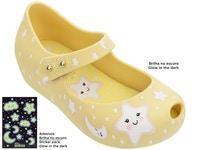 The Mini Melissa Ultragirl Sweet Dreams has a unique moon-shaped & sparkling dark print!The shoe with velcro closure is super practical and comfortable and, besides, comes with a sticker that follows the proposal of the print and also glows in the dark!