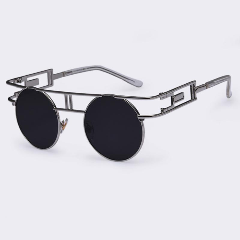 Rectangular Geometric Metal Frame Round Sunglasses Sunglasses NO3