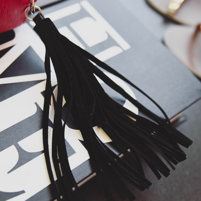 Nothing says sultry like this red lip shoulder bag. This leather handbag boasts a unique sexy lips design that shouts charisma and fearlessness. A charming tassel detail completes the look.
