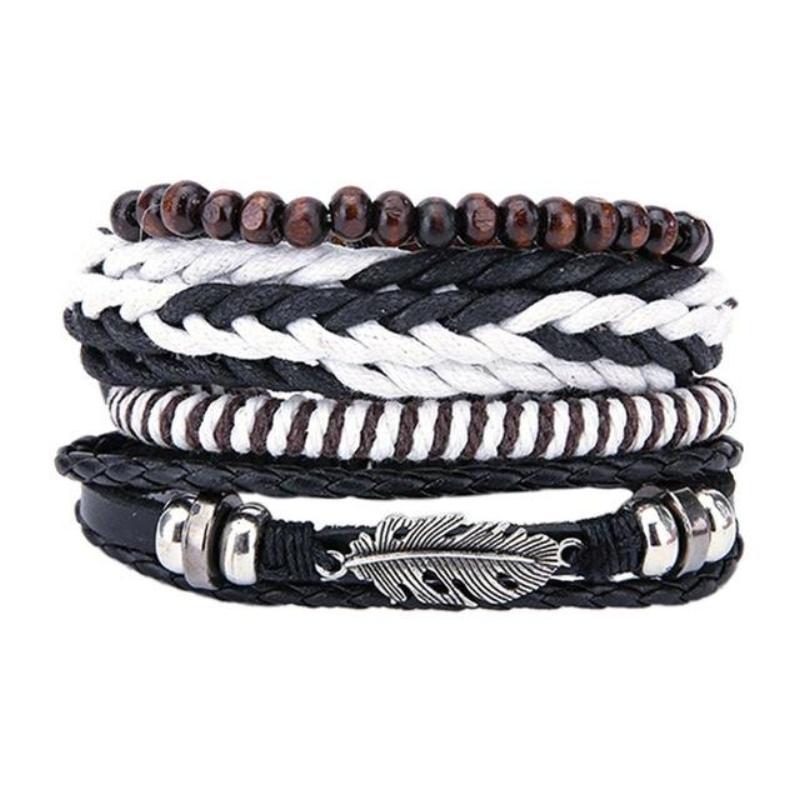 Go for a bit of a retro look with this leather bracelet for men. Accented with charms, wooden beads and wax rope, this masculine accessory is fantastic for any casual attire. Amp up your personal style and stand out from the crowd with this statement piece!