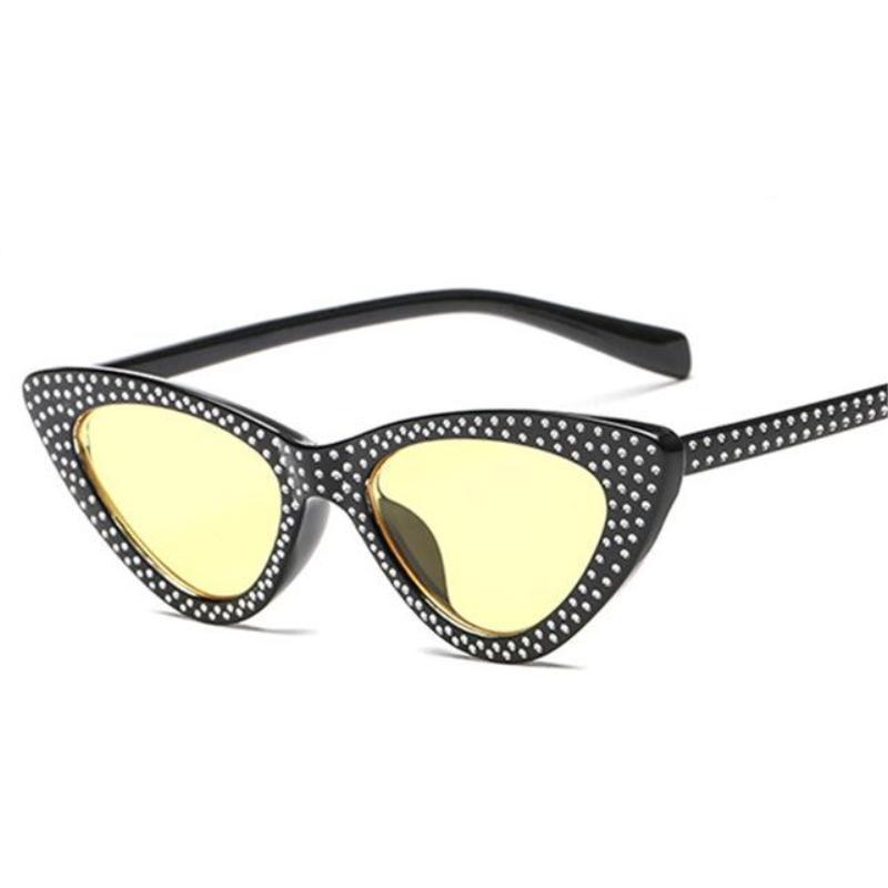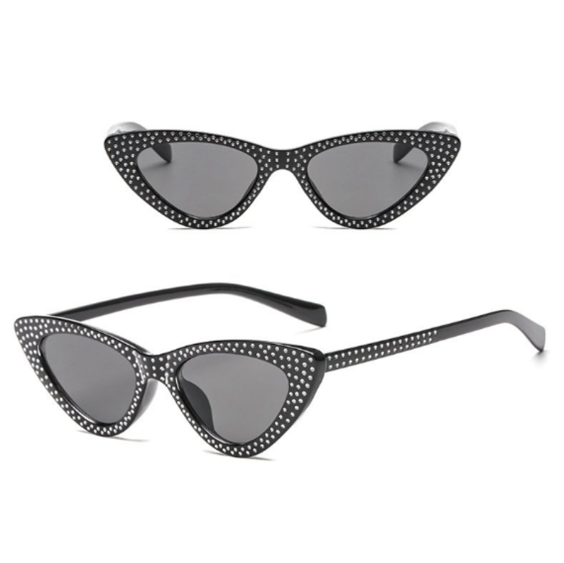 Be in the moment with these unique retro cat eye pointy sunglasses with a bedazzled rhinestone kick. These trendy vintage glasses are all the rage and are made for the girl who loves to make a fashion statement. Glasses come in 7 different colors with multicolor lenses.