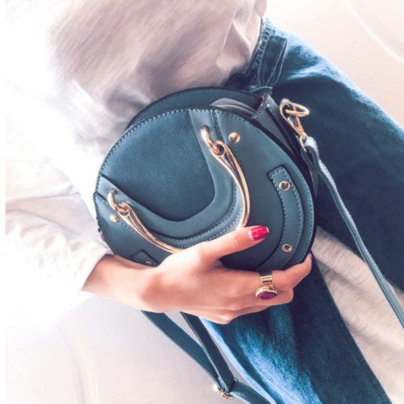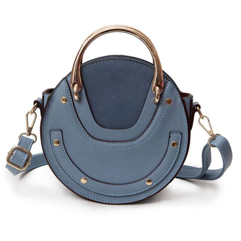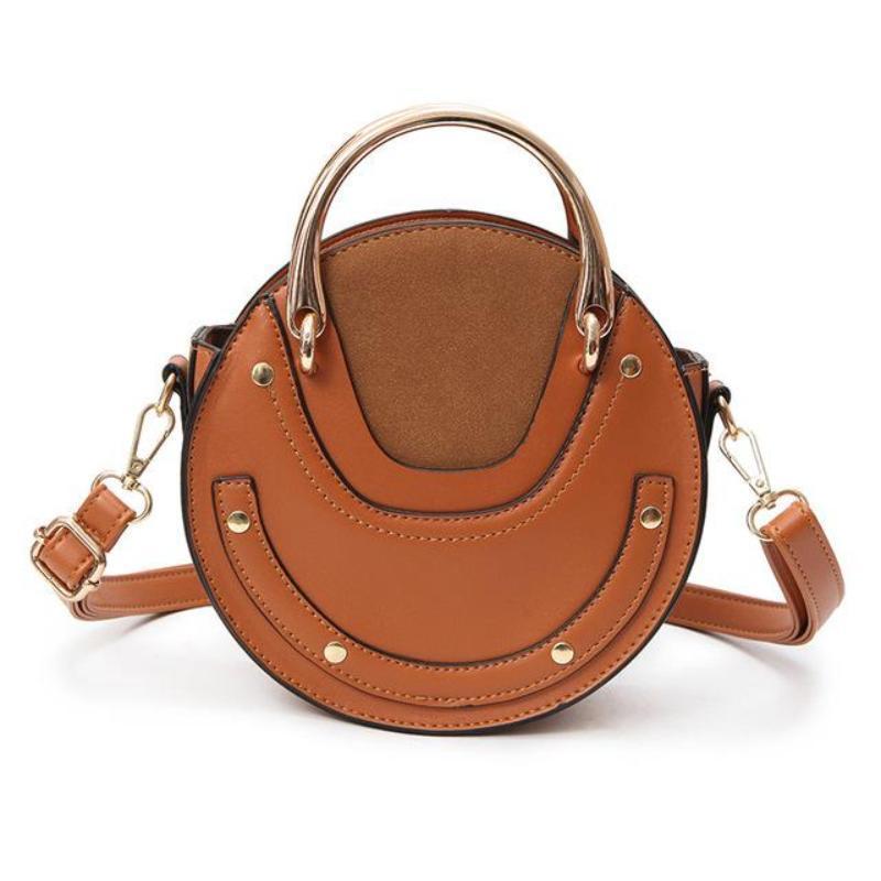 The perfect day to night messenger bag that is just the right size to hold your essentials with the look of the moment. This round shaped top handle messenger bag comes in a variety of colors to match any trendy casual attire or evening dress.