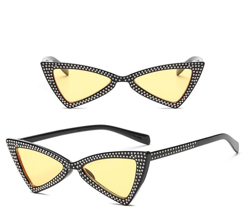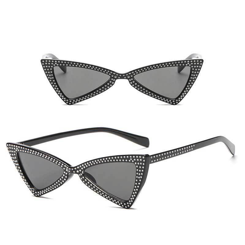 Stand out for Spring/Summer 2018 in these Retro TRIANGLE Cat eye sunglasses featuring a smaller lens and rhinestone detailing. Seen all over the runway this year these glasses are a wardrobe staple.